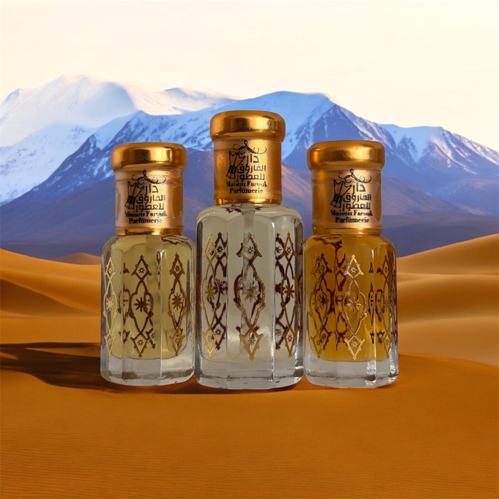 Bei Maison Farouk entstehen Duftwelten, die moderne Eleganz mit dem Zauber orientalischer Dufttraditionen vereinen. Unsere Ölparfüme sind alkoholfrei und basieren auf naturidentischen Duftstoffen, die die Reinheit und Tiefe natürlicher Aromen atmen, zugleich aber eine aussergewöhnliche Stabilität und Langlebigkeit bieten.